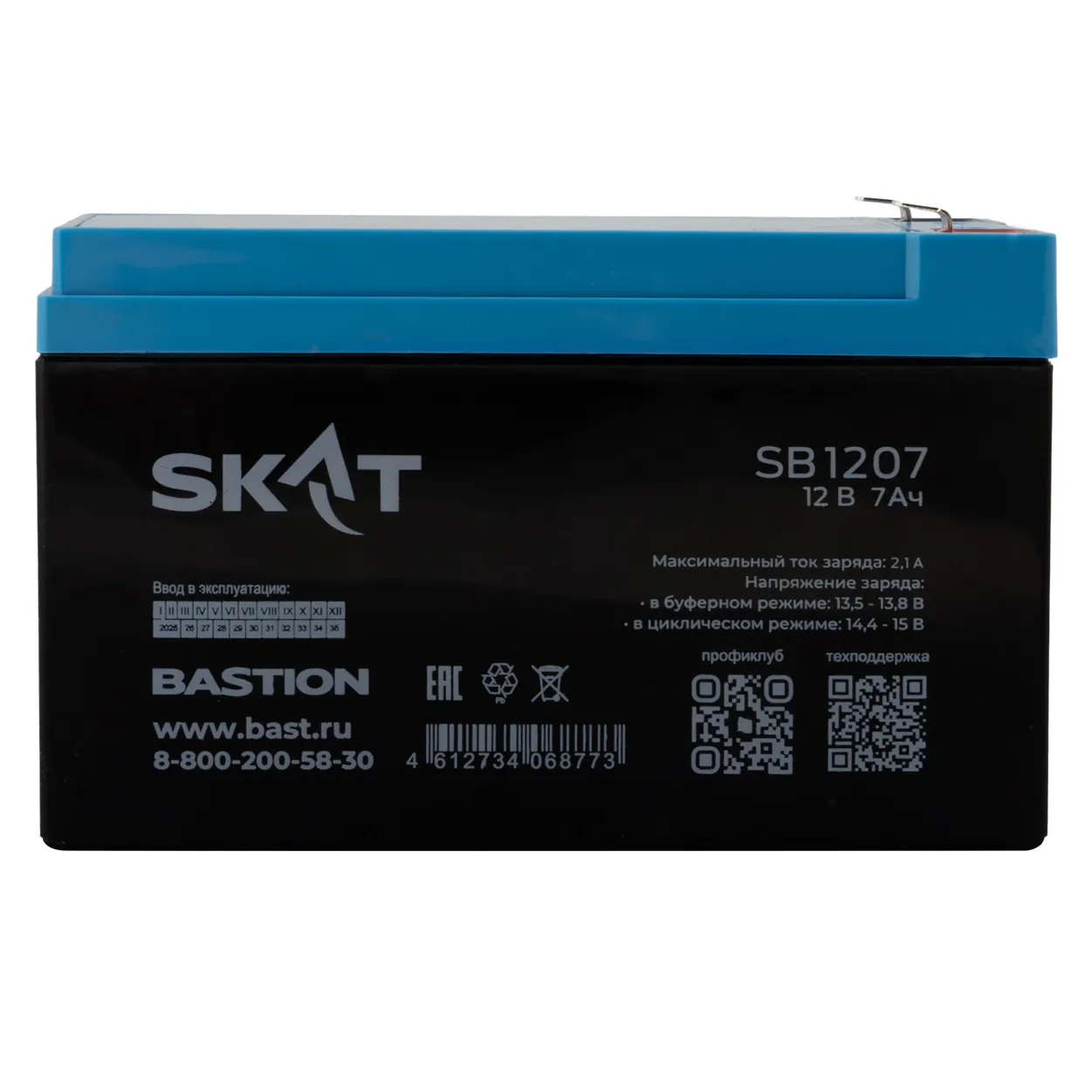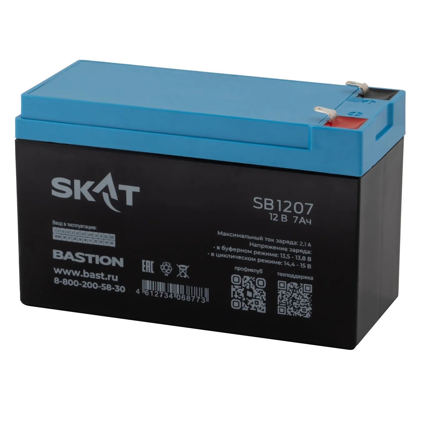 SKAT SB 1207(12В-7Ач) производится по технологии AGM (Absorbent Glass Mat) с системой рекомбинации газов VLRA и предназначен для использования в составе системы резервного питания.