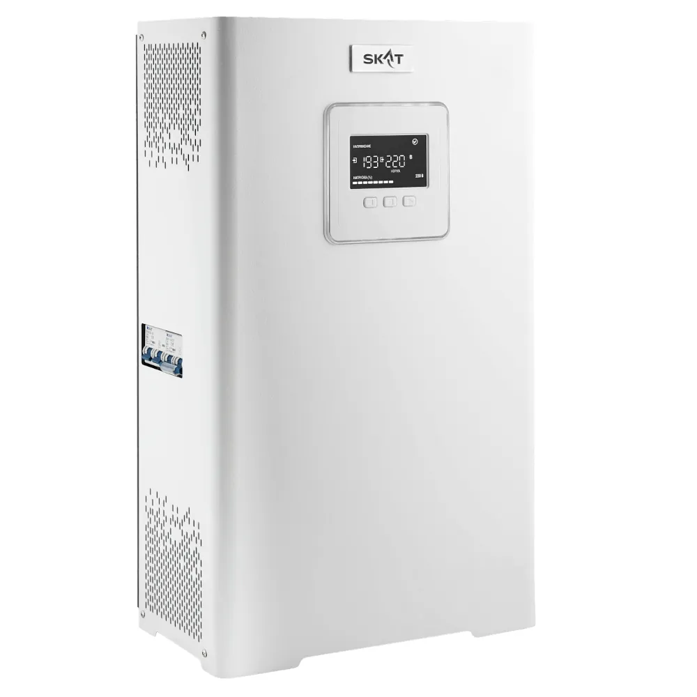 SKAT ST S-L-30000 — это мощный однофазный симисторный стабилизатор напряжения 30 кВА, предназначенный для защиты оборудования от перепадов и скачков в электросети. Подходит для эксплуатации на коммерческих, промышленных и жилых объектах в условиях нестабильного напряжения.